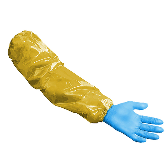 COVERME™ polyurethane reusable seamless sleeves are 18 inches in length with elasticized ends for complete forearm coverage in any number of production, assembly or general manufacturing environments. This premium weight washable sleeve offers excellent protection against liquids, chemicals, acids, oils, fuels, solvents, snags, punctures or abrasions. Polyurethane has a longer life and stretches more than conventional vinyl or polyethylene. These sleeves are seamless to prevent baterial and dirt traps in clean environments. They are CFIA accepted in a variety of colours for food processing facilities that maintain HACCP compliance.