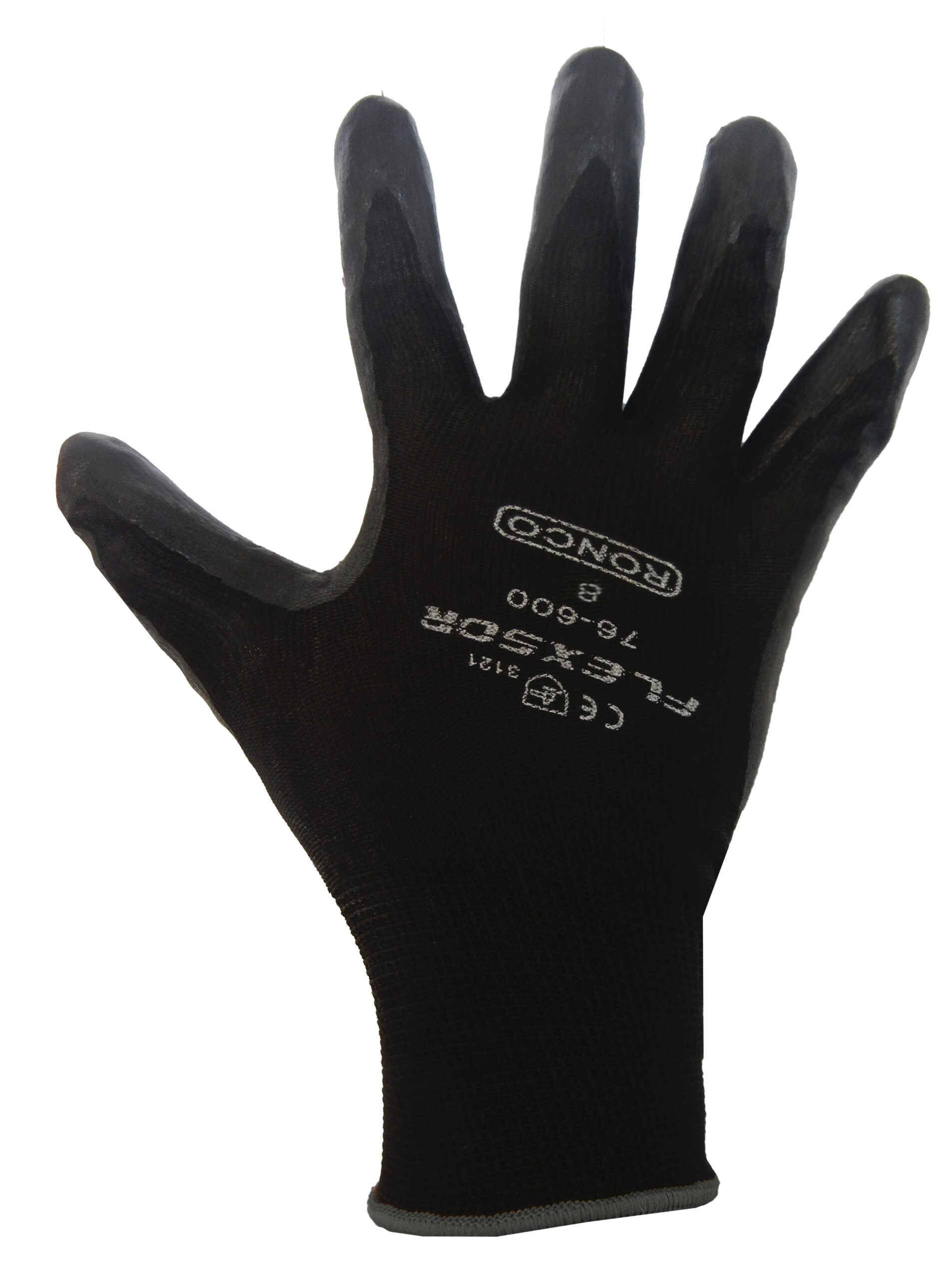 RONCO FLEXSOR™ 76-600 is a wet and light oil grip glove for precision handling of oily parts, tools and plant equipment. Its breathable nylon liner provides an excellent hand form fit and dexterity for incredible comfort and performance. Workers prefer it for machine operations, general warehouse applications and small parts handling.