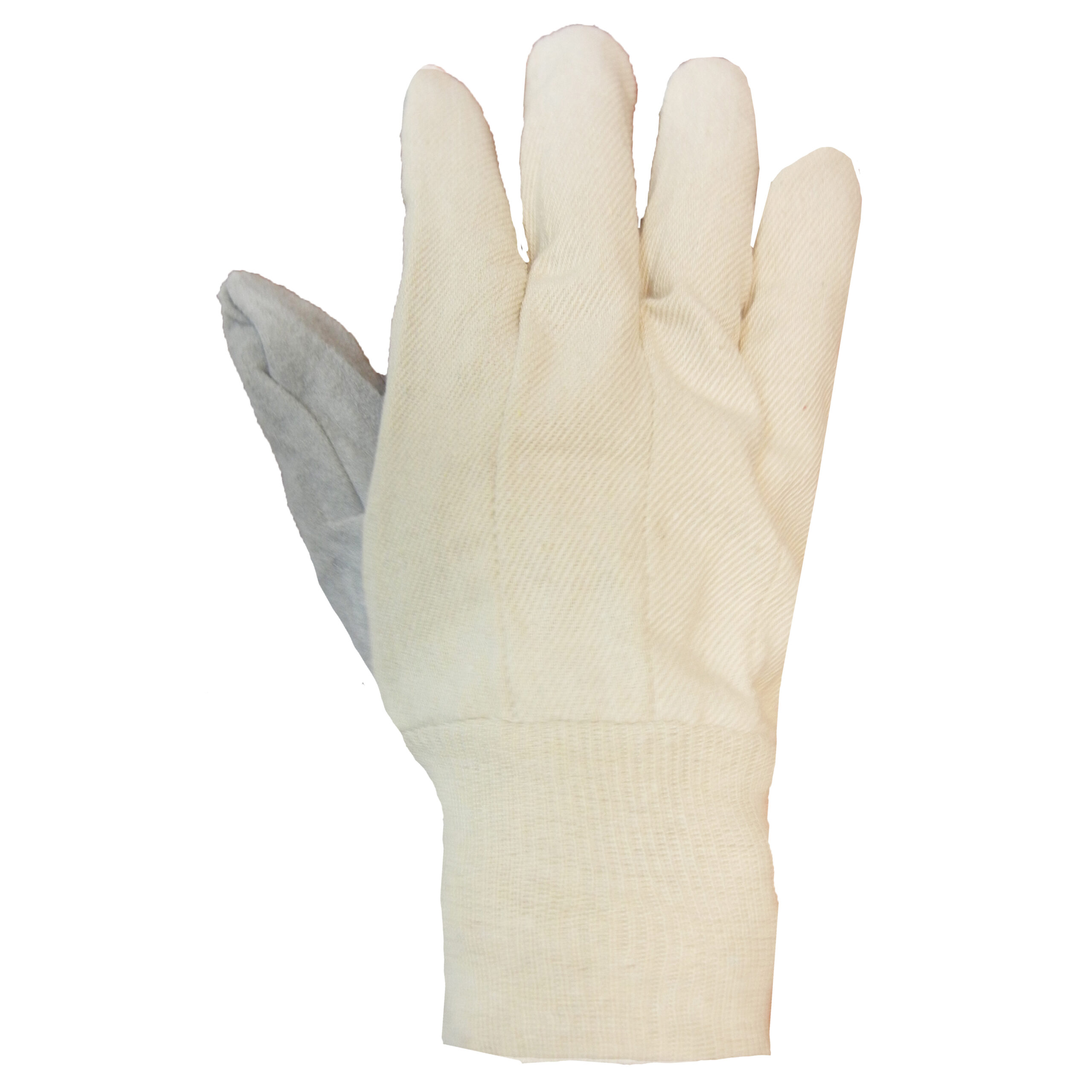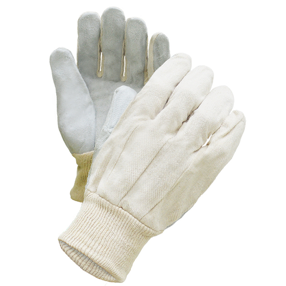 An economical favourite of workers for general labour, assembly or warehouse applications, the SafetyHouse split leather palm glove is available in a clute pattern with knitwrist cuff. Manufactured with a 100% cotton back, this glove is breathable and comfortable for all-day wear. It effectively repels grease and liquids and is washable for repeated use.