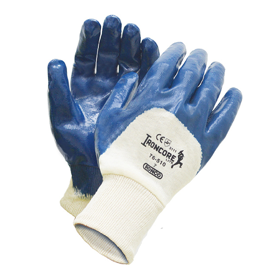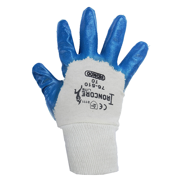 RONCO IronCoreTM Lite is a light to medium duty reusable glove which offers good core protection and flexibility when performing industrial or domestic abrasive tasks. It features a good combination of abrasion, snag and tear resistance and its nitrile coating protects against domestic work chemicals, oils and bases.