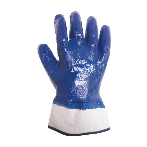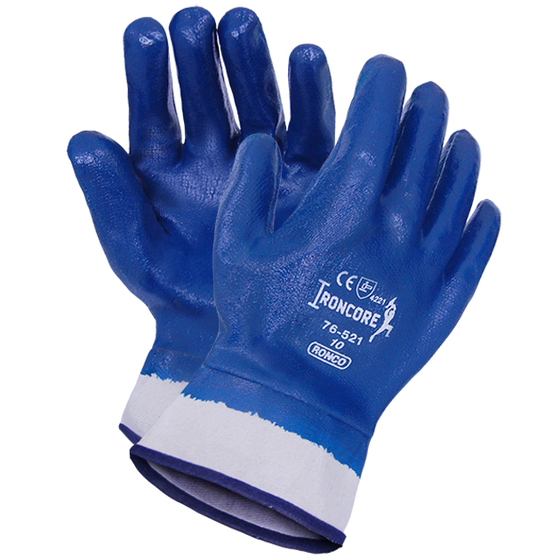 RONCO IronCoreTM is a glove in its own class that offers heavy duty core protection against manual intensive abrasive tasks. It features excellent dry grip and a good combination of abrasion, cut, snag and tear resistance. Its thick nitrile coat offers excellent resistance against construction chemicals, solvents, oils and bases. Workers appreciate it for its comfortable jersey lining for all day wear.