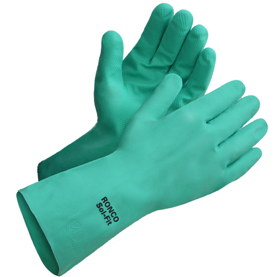 Made of premium nitrile, RONCO Sol-Fit™ offers high flexibility and finger movement. It has outstanding abrasion resistance and is ideal for use in applications that involve handling detergents, solvents, oils, fuels, alcohols, acids or fats. Sol-Fit™ is preferred by users in the food or industrial sectors who appreciate the variety of linings, lengths and mil thicknesses to suit their specific needs.