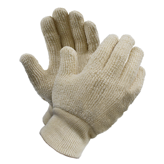 Manufactured with 24 oz cotton terry cloth, Thermo-Guard™ knitwrist cuff gloves are CFIA accepted for use in food processing and baking and are also ideal for industrial applications where there is intermittent handling of hot surfaces up to 300°F.