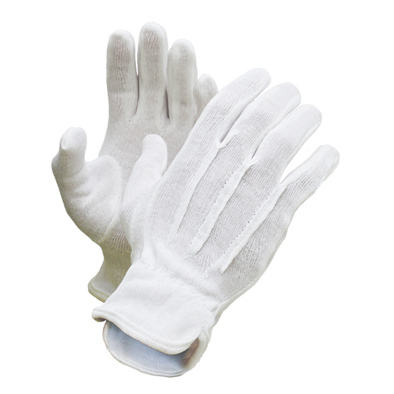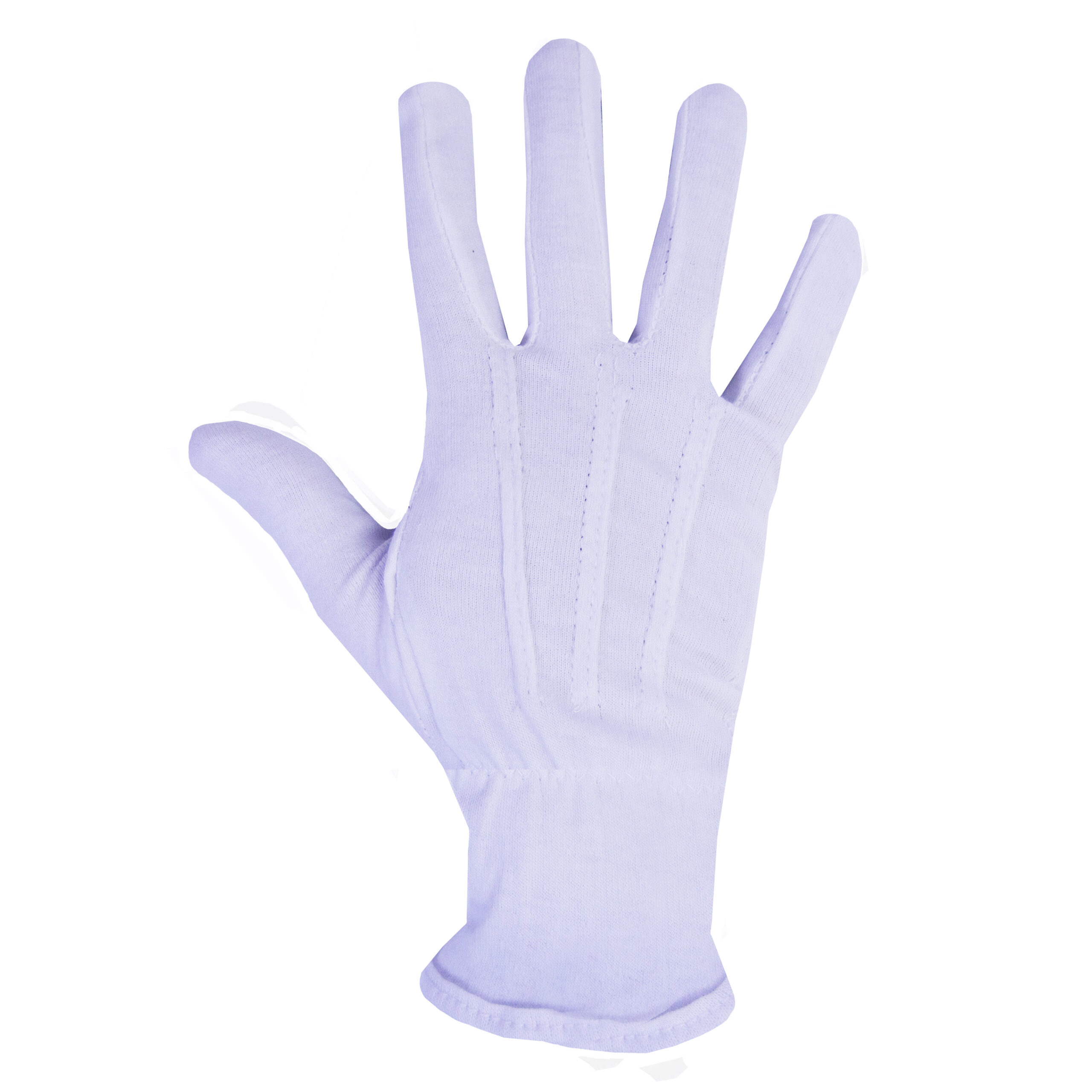 A traditionally styled white cotton glove for elegant service, using fashion points, fourchettes, inset thumb to highlight the style. These gloves can be used for catering as a formal waiters’ gloves, as a military parade gloves, as marching band gloves, or as a church gloves, provides a professional look. Can also be used for handling small parts.